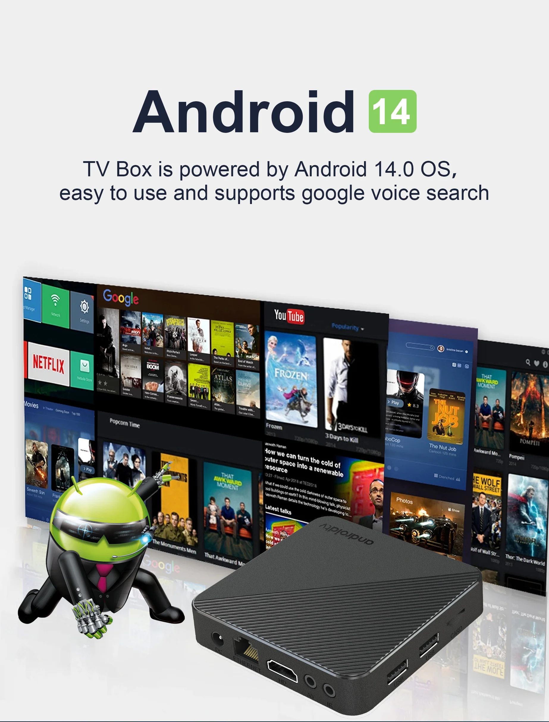RK3518 Android 14 TV Box 4K Reprodutor de mídia inteligente WiFi6 Bluetooth5.0 Set Top Box Suporte YouTube Netflix IPTV OTT Dispositivo de streaming