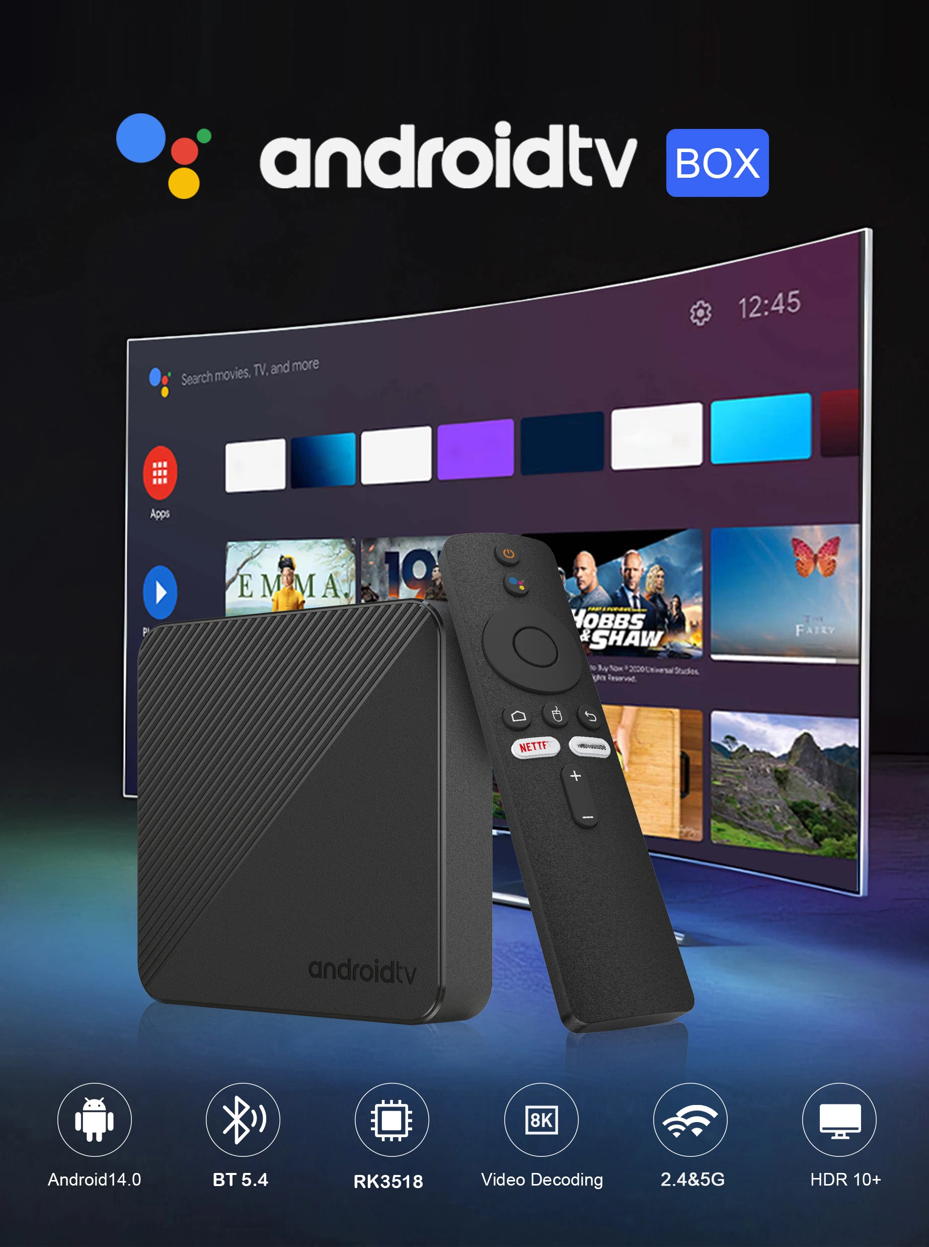 T8 Android TV Box Android 14 WiFi duplo 2.4G/5G 8GB RAM 128GB ROM Rockchip RK3518 8K 3D Google Voice Media Player Set Top Box